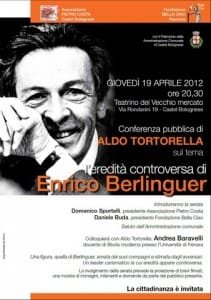 Giovedì sera 19 Aprile a Castel Bolognese, al Teatrino del Vecchio mercato, in via Rondinini 11, si parlerà di Enrico Berlinguer. L’Associazione Pietro Costa e la Fondazione Bella Ciao, hanno invitato per ricordare il suo pensiero Aldo Tortorella, che di Berlinguer fu per anni stretto collaboratore. Una figura, quella di Berlinguer, amata dai suoi compagni e stimata dagli avversari. Un leader carismatico la cui eredità ad alcuni oggi appare controversa.