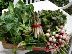 Raccolto. Si raccolgono asparagi, carciofi, ravanelli, spinaci, cespi di insalata, cipollotti e i primi piselli.