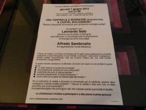 La prima iniziativa in cantiere è prevista per questa sera, giovedì 7 giugno – ore 21 – al Centro Sociale, in viale Umberto I. Si discuterà di centrali a biomasse, o biodigestori che dir si voglia. Ne parleranno col pubblico presente: LEONARDO SETTI, professore dell’Università di Bologna, specializzato in tecnologie per la produzione di energia da fonti rinnovabili e ALFREDO SAMBINELLO di Legambiente