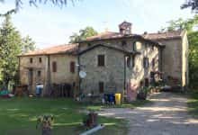 Al primo crocicchio seguiamo a sx l’indicazione del passaggio per le bike. Poco dopo si nota sulla dx una grande casa (padronale) di campagna con una torre. Volendo, non si fatica a trovare una traccia di sentiero che giunge alla stradina che in pochi minuti porta alla casa. Noi ci siamo andati. Il luogo testimonia i fasti del passato di una villa con pertinenze agricole e un grande parco segnato da alberi secolari. Zona panoramica, molto bella. Con ogni probabilità, proseguendo lungo il sentiero si arriva alla strada di fondo valle che ci riporta al campeggio, ma non ne sono certo, Quindi, prima di avventurarsi… .