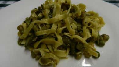 Per condire la pasta per due persone. Tagliuzzate una fetta di guanciale. Fatela sfrigolare fino a quando le listarelle diventeranno color nocciola. Gettate via parte del grasso che avranno rilasciato. Aggiungete un pugno di puntarelle di strigoli, una bella spruzzata di vino e poco sale. Quando il vino sarà evaporato, mettete 4-5 cucchiai di passata di pomodoro. Cuocete ancora per qualche minuto, aggiungendo poca acqua – se serve – e un pizzico di peperoncino. Gettate dentro la pasta che avrete cotto in acqua salata (maccheroni, ma anche tagliatelle alle ortiche), una passata di olio e saltate.