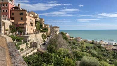 A Fano sostiamo, sempre, nel “parcheggio” della Sassonia. Oddio, nessuno pensi sia gran che. Si tratta di un prato sconnesso – che quando piove si allaga – senza stalli segnati, accanto ad una strada rumorosa, difesa dall’erosione del mare da una barriera di macigni di roccia. Poco a sinistra, verso il paese, una piccola spiaggia di ciottoli, libera. Davanti, un mare discretamente bello e pulito. Nessun servizio a disposizione, nemmeno un attraversamento pedonale in un luogo assai pericoloso.