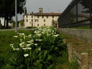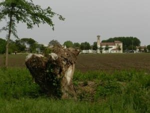 Lungo il percorso ci ricordiamo di ciò che la sera ci ha detto la gentile barista: “la nostra montagna è tutta bella, in pianura la bellezza bisogna cercarla”. In pianura primeggia la coltura del mais – allo scopo di foraggiare le tante centrali a biomasse – e questo la rende monotona, oltre a indurre a pensieri negativi; è però solcata da canali di acqua, da zone paludose e cosparsa di una bella vegetazione.