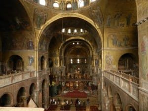 La fila per la Basilica di San Marco non è lunghissima, quindi decidiamo di visitarla. L’interno è veramente straordinario; tutto il complesso – dalle navate, alle volte, al presbiterio – è completamente istoriato con milioni di tessere di mosaico. Mai visto nulla di simile. Debbo dire però che a me è parsa un poco buia. Forse troppa polvere sopra il mosaico e forse l’esigenza di una ripulita per dare lucentezza e colore alle “tessere”.