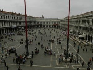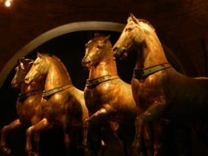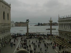 Dopo, siamo saliti ad ammirare gli splendidi Cavalli di San Marco in materiale bronzeo, racchiusi in una stanza (sostituiti sul balcone da copie) pagando un obolo di 5 euro. Dal grande balcone ci siamo poi affacciati su piazza San Marco per goderne lo spettacolo dall’alto. La vista è di grande impatto emotivo per la bellezza e l’armonia dei palazzi, dei loggiati con a fianco il possente campanile, delle movenze dei gruppi di persone che tracciano il cosmopolitismo di una città mondiale.