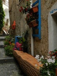 Vi si accede per mezzo di una grande scalinata ed un maestoso portale. Il borghetto è tenuto con cura. Tanti fiori, festoni, aiuole di piante grasse, colori vivaci. Stradine e vicoli puliti, raccolta porta a porta dei rifiuti differenziati, perfettamente funzionante. Quello del buon funzionamento del servizio di raccolta dei rifiuti è stata per noi una gradita sorpresa ed un segno di positivo cambiamento per quei luoghi. D’altronde siamo nel regno di Vincenzino De Luca, un politico molto rispettato da queste parti e che senz’altro a fatto in questi anni cose positive.
