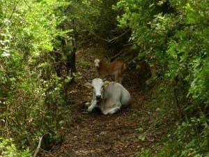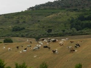 Abbiamo puntato alla baia Trentova dove abbiamo sostato vicino al mare in una “stoppia” trasformata in parcheggio comunale gratuito. Nei paraggi funziona un parcheggio per camper e bus a pagamento. Siamo già nell’area del Parco del Cilento e del Vallo di Diano. La zona è boscata con campi a prato-pascolo dove scorrazzano mandrie di bovini e greggi di pecore. Ci è parso che anche da queste parti i conduttori siano lavoratori stranieri. La presenza di vacche e pecore al pascolo ci ha fatto pensare che a cercarla si possa trovare carne di qualità. Spesso si incontrano case con annessa macelleria che testimoniano senz’altro un rapporto diretto fra produzione e consumo.