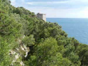 Recuperato il camper abbiamo proseguito per Santa Caterina dove, un comodo parcheggio, ci ha consentito di salire sulla scogliera e visitare Torre Uluzzo. Da qui ancora una bellissima vista sulla costa del parco. Santa Caterina è una bella località, signorile ma non troppo, ordinata, armonica nelle sue architetture. Si direbbe una goccia fuor d’acqua.