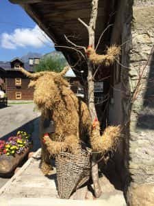 A Sappada è bello perdere tempo ad esplorarla. Le composizioni floreali, le maschere, le scenette di antica vita familiare costruite col principio dell’arte povera, utilizzando ciò che si trova in natura, sono fra le cose più caratteristiche che si possono incontrare girovagando lungo le viuzze. I colori della natura sono sorprendenti. I prati cosparsi di una messe di piante e fiori appaiono come la tavolozza di un pittore e mettono istintivamente di buon umore. Abbiamo visto per la prima volta in natura la rigogliosa pianta del rabarbaro e tante altre sconosciute.
