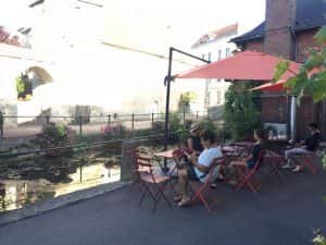 Per assaggiare il vino ci siamo seduti davanti ad un locale vicino al ponte che ci piaceva per la sua riservatezza. Abbiamo pagato due calici di Chablis, non più di 100 cc l’uno, 13 euro. Senza nemmeno il conforto di due grissini. Abbiamo saputo che se ne producono di cinque tipi, dal Petit Chablis e tre Gran Cru. Le diverse classificazioni dipendono dai terreni di qualità diversa e anche dal fatto se le viti sono ai piedi o in alto delle varie collinette; le bottiglie costano da 9 a 25 euro.