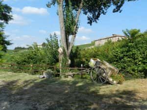 Il giorno dopo, a piedi, siamo andati a Serralunga d’Alba, camminando lungo le vigne di pendio e i noccioleti di valle, seguendo sentieri segnalati e potendo così rimirare le famose viti e la bella uva. Camminare fra le viti ha il suo fascino. Si apprezzano il lavoro dei contadini – oramai quasi interamente delegato a lavoratori stranieri – e le geometrie della campagna e si ha l’idea di quanto sia faticoso il loro lavoro.