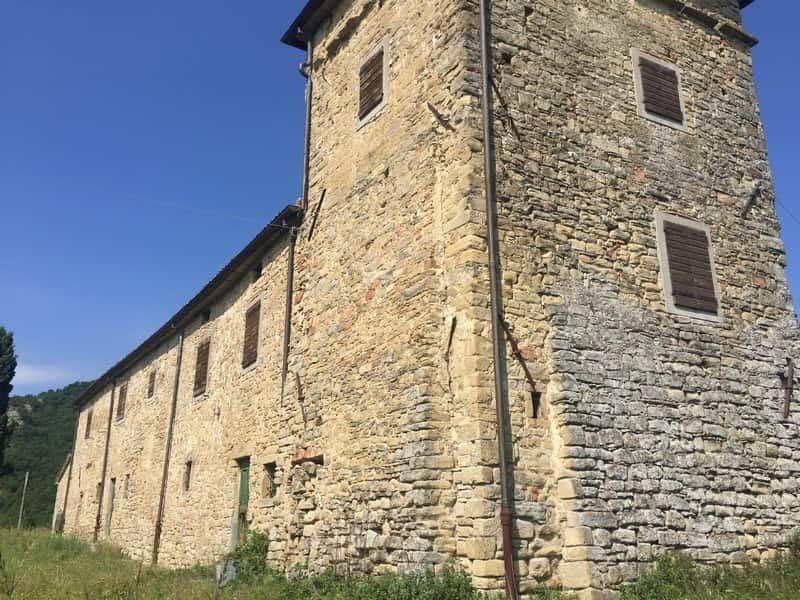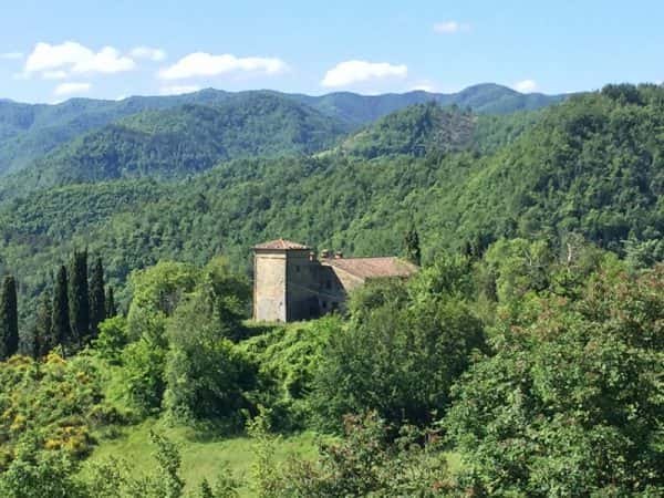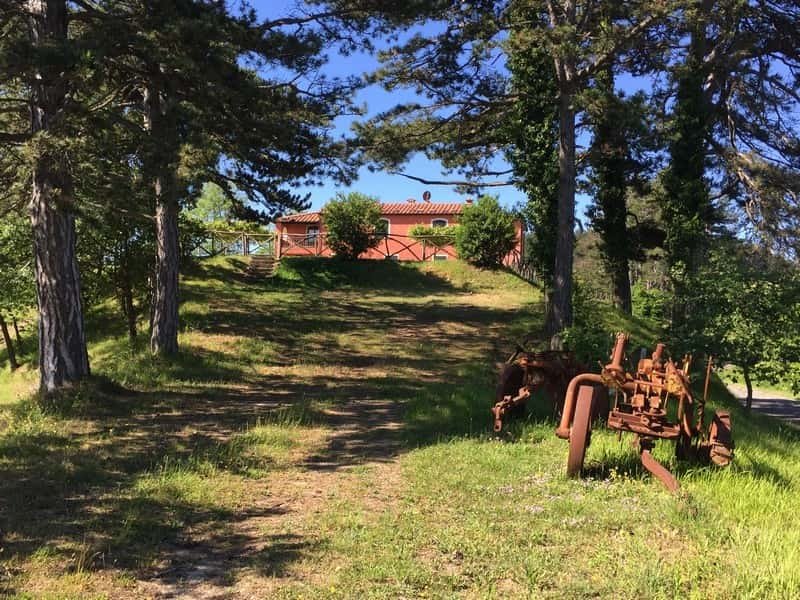 Al primo crocicchio seguiamo a sx l’indicazione del passaggio per le bike. Poco dopo si nota sulla dx una grande casa (padronale) di campagna con una torre. Volendo, non si fatica a trovare una traccia di sentiero che giunge alla stradina che in pochi minuti porta alla casa. Noi ci siamo andati. Il luogo testimonia i fasti del passato di una villa con pertinenze agricole e un grande parco segnato da alberi secolari. Zona panoramica, molto bella. Con ogni probabilità, proseguendo lungo il sentiero si arriva alla strada di fondo valle che ci riporta al campeggio, ma non ne sono certo, Quindi, prima di avventurarsi… .