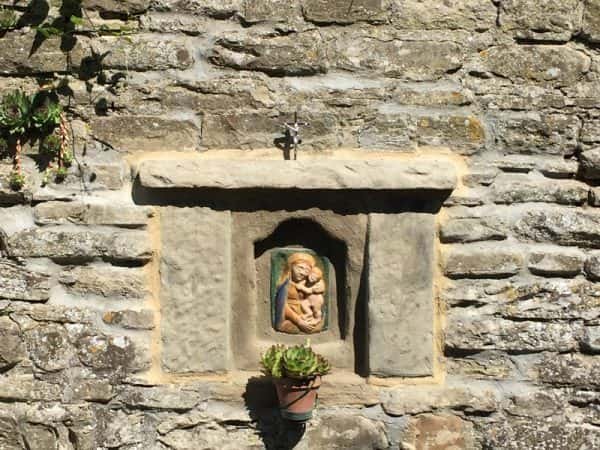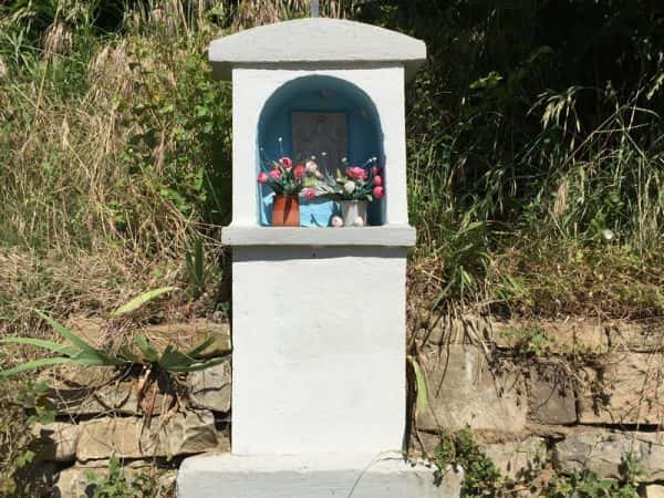 Si sale lungo la strada asfaltata che porta al passo che potremmo chiamare anche “dei segnali”: se ne contano 71 in meno di duecento metri. Solito bel paesaggio punteggiato da cipressi. Si incontrano alcune graziose edicole mariane, una caratteristica di questo territorio.