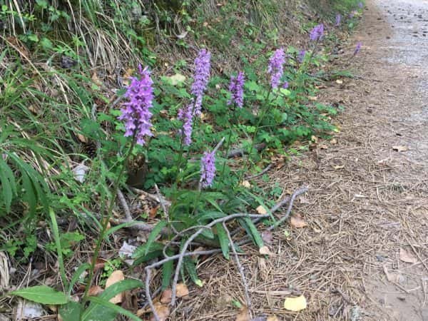 Giriamo a sx su stradello, verso il Tramazzo, seguendo il segnavia Cai 553. Siamo sul crinale da dove lo sguardo abbraccia due vallate, quella che da Lutirano sale a Gamogna e quella del Tramazzo. Ancora la bellezza dei fiori fra i quali una copiosa specie di orchidea selvatica. Da queste parti le vecchie case sono state trasformate in resort e offerte particolarmente agli stranieri. Sono belle, ma al momento disabitate.