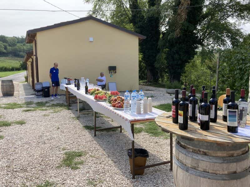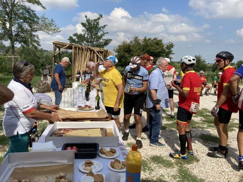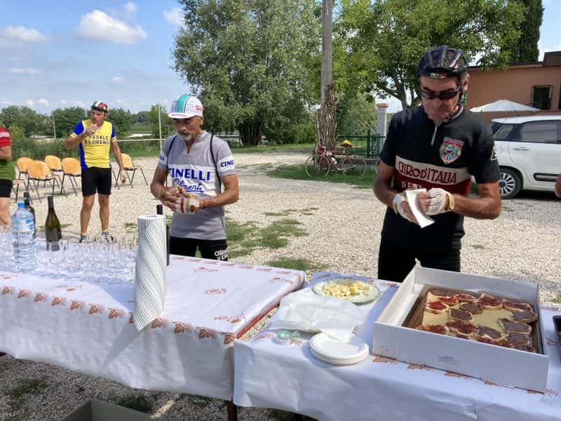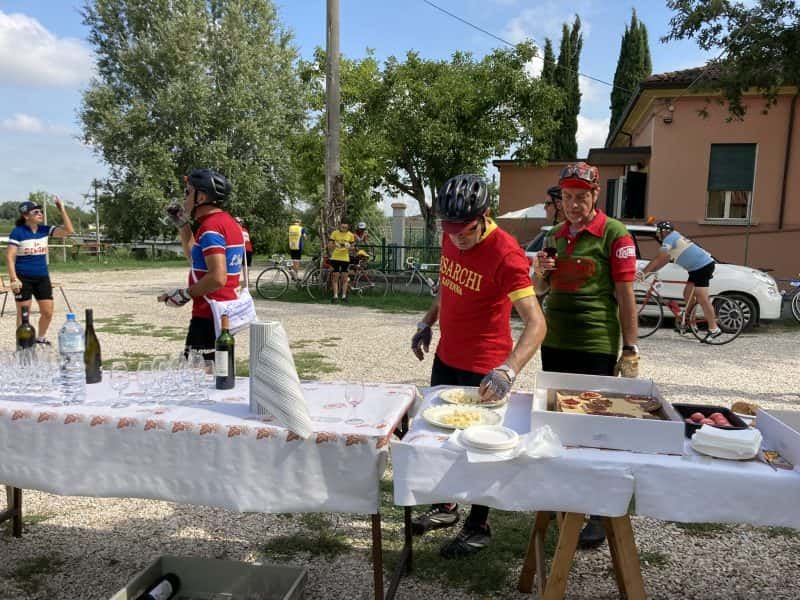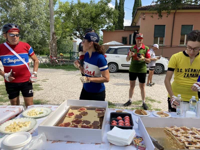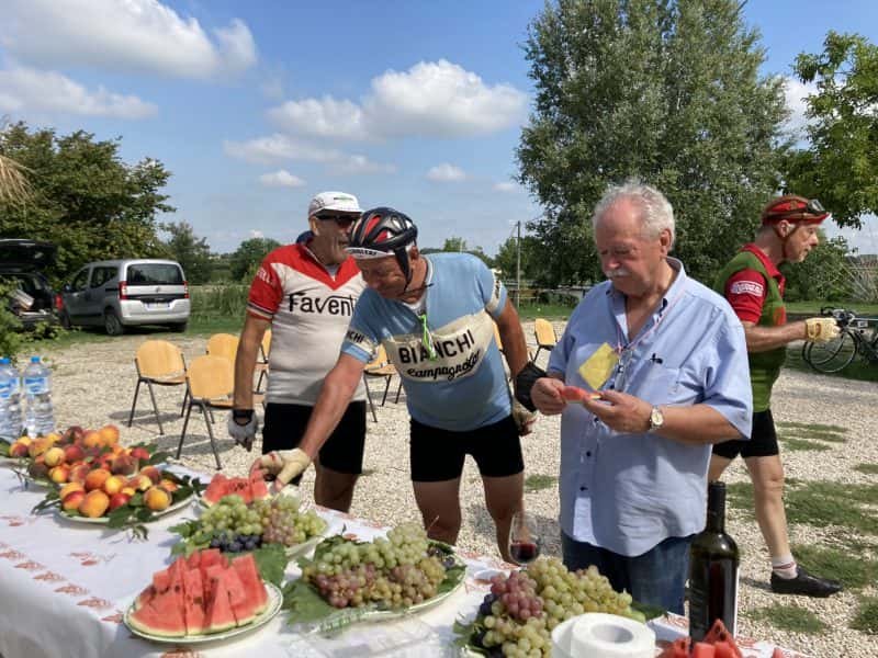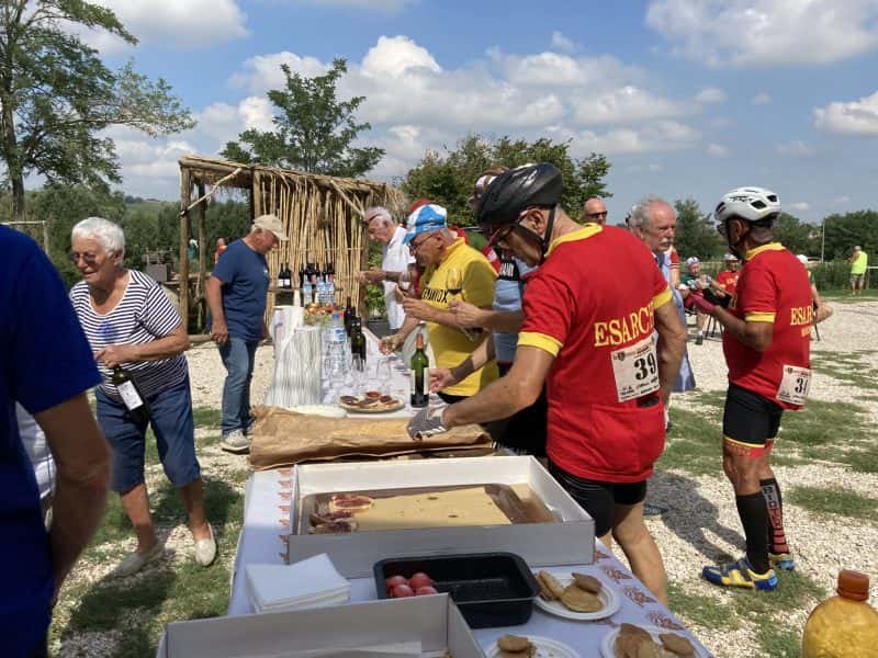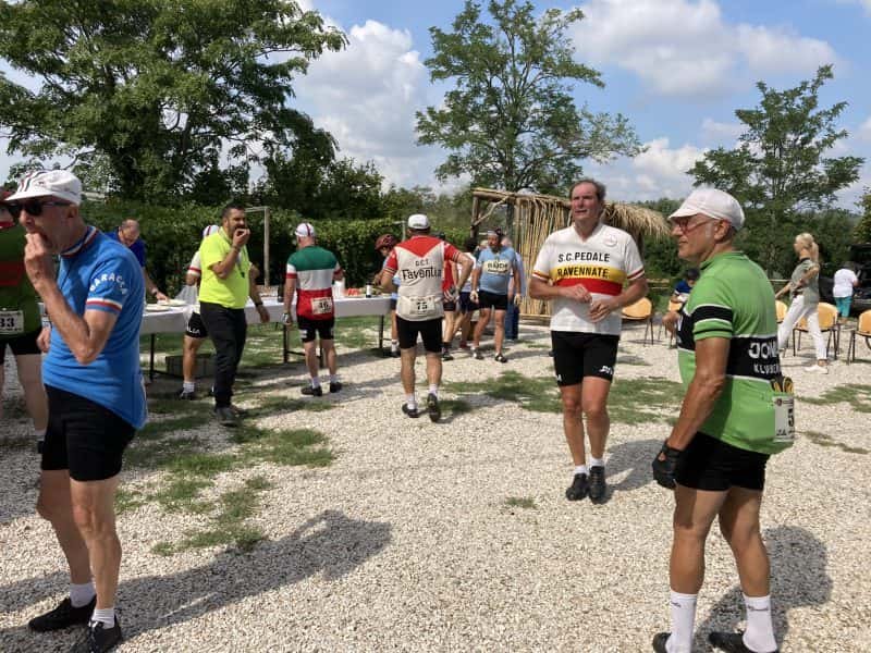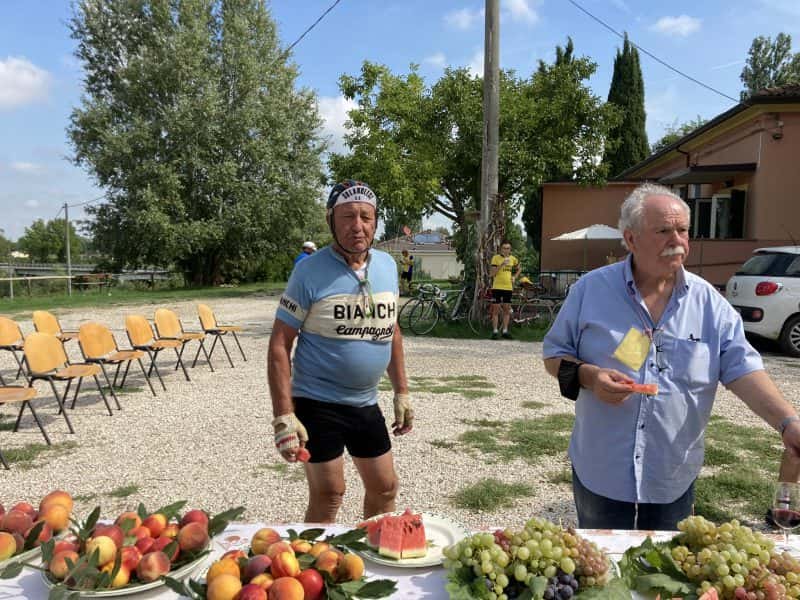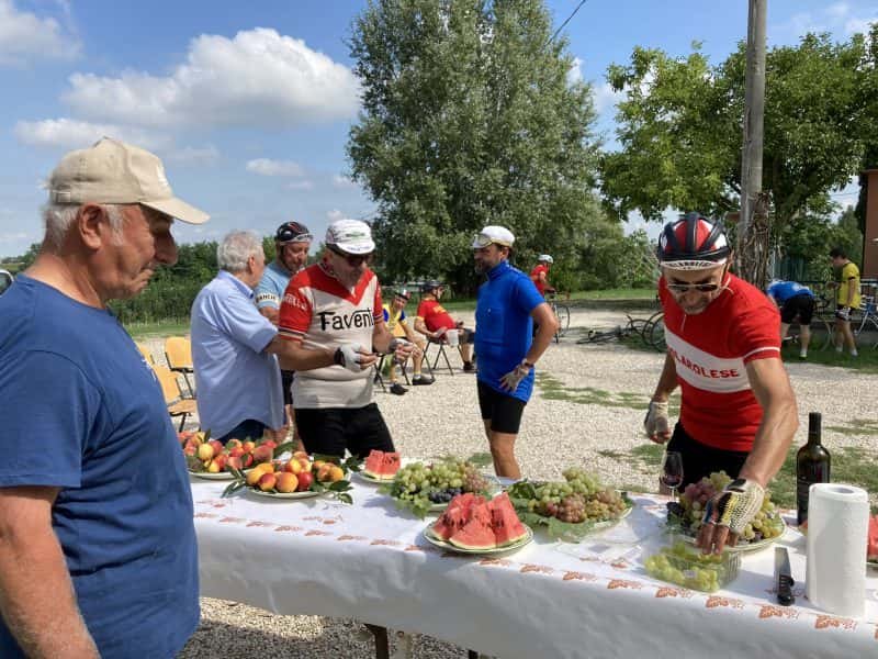 All’ex pesa c’era un bel ristoro a cui gli Amici di Tebano e del Senio hanno collaborato con buona frutta di stagione e vino. Una lunga tavola multicolore con quanto la nostra bella campagna offre, che ha fatto sorridere di gioia questi corridori memori di un passato da continuare a ricordare. Buoni chilometri a tutti.