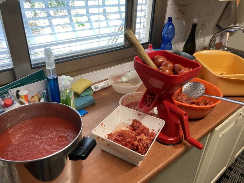 In questi giorni i pomodori cominciano a giungere a maturazione (in ritardo sulla tabella di marcia). Per le famiglie che ancora cucinano in casa, avere a disposizione passata di pomodoro dei frutti coltivati nel proprio orto fa la differenza. Se volete provarci, e non avete ancora un vostro orto, potete acquistare i pomodori da qualche contadino o bottega vicino a casa.