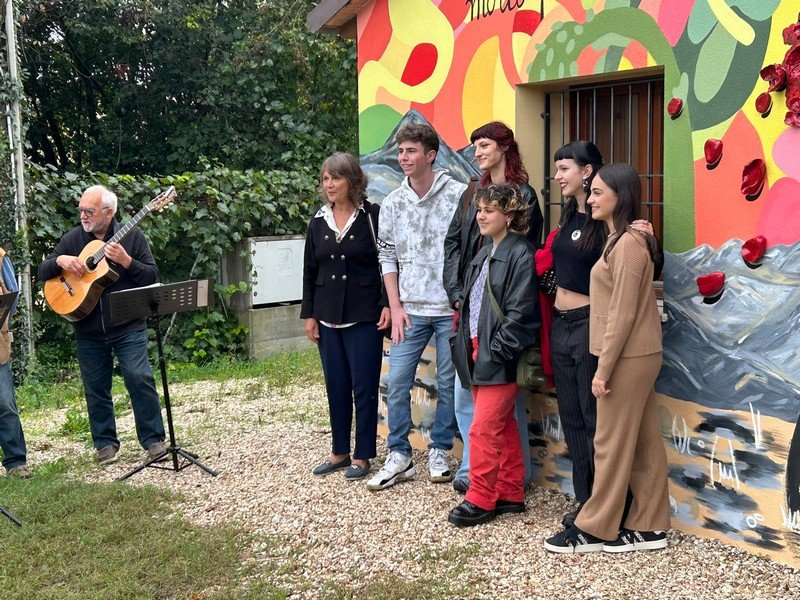 Oltre al suo significato, il disegno è bellissimo, frutto del lavoro comune di una classe di giovani ragazze e ragazzi che si sono impegnati in una lezione all’esterno che li ha colpiti e resi felici. Bravi ragazzi.