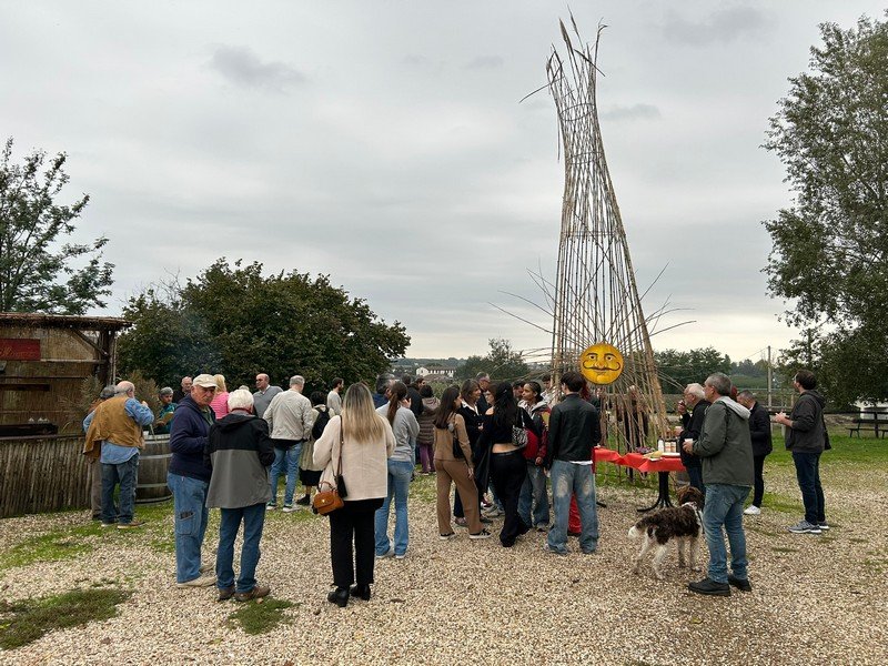 Il murales si trova nella facciata dei locali della ex pesa, ora adibiti a sostegno del corso di laurea in enologia dell’Università di Bolognese. Proprio dove facciamo Acque e Miracoli a Tebano.