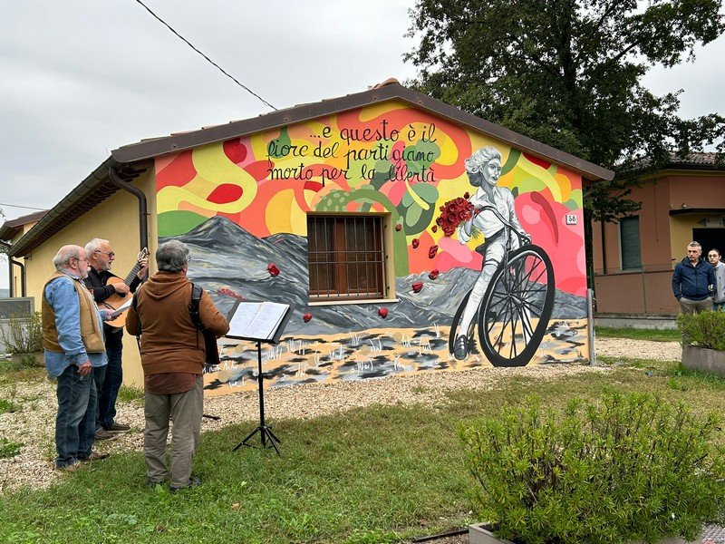 Domenica scorsa il comune di Faenza e l’Anpi hanno inaugurato a Tebano un bellissimo murales. Lo hanno dipinto i ragazzi del Liceo Torricelli-Ballardini, indirizzo artistico, sostenuti dai propri insegnanti, che avevano vinto un bando del comune.